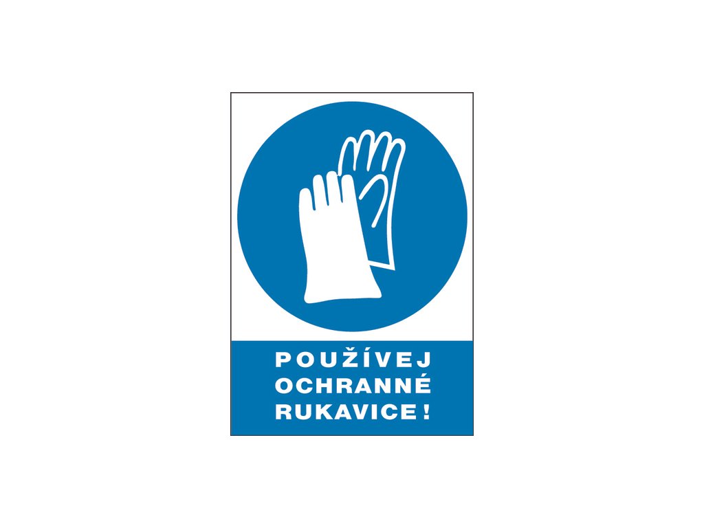 Bezpečnostní tabulka - Použij ochranné rukavice; Materál: PSH; Rozměry: 30 x 21 cm;Doplňkové parametry