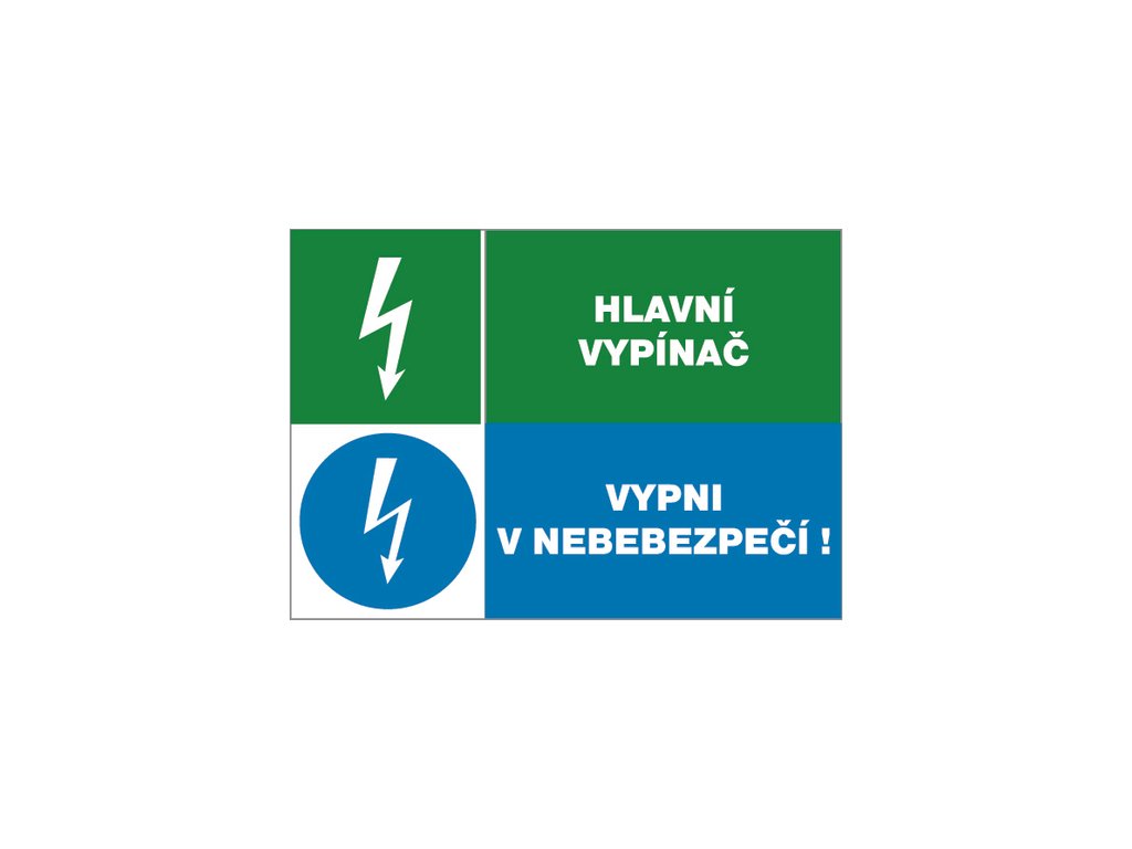 Bezpečnostní tabulka - Hlavní vypínač - vypni v nebezpečí; Materál: PSH; Rozměry: 30 x 21 cm;Doplňkové parametry