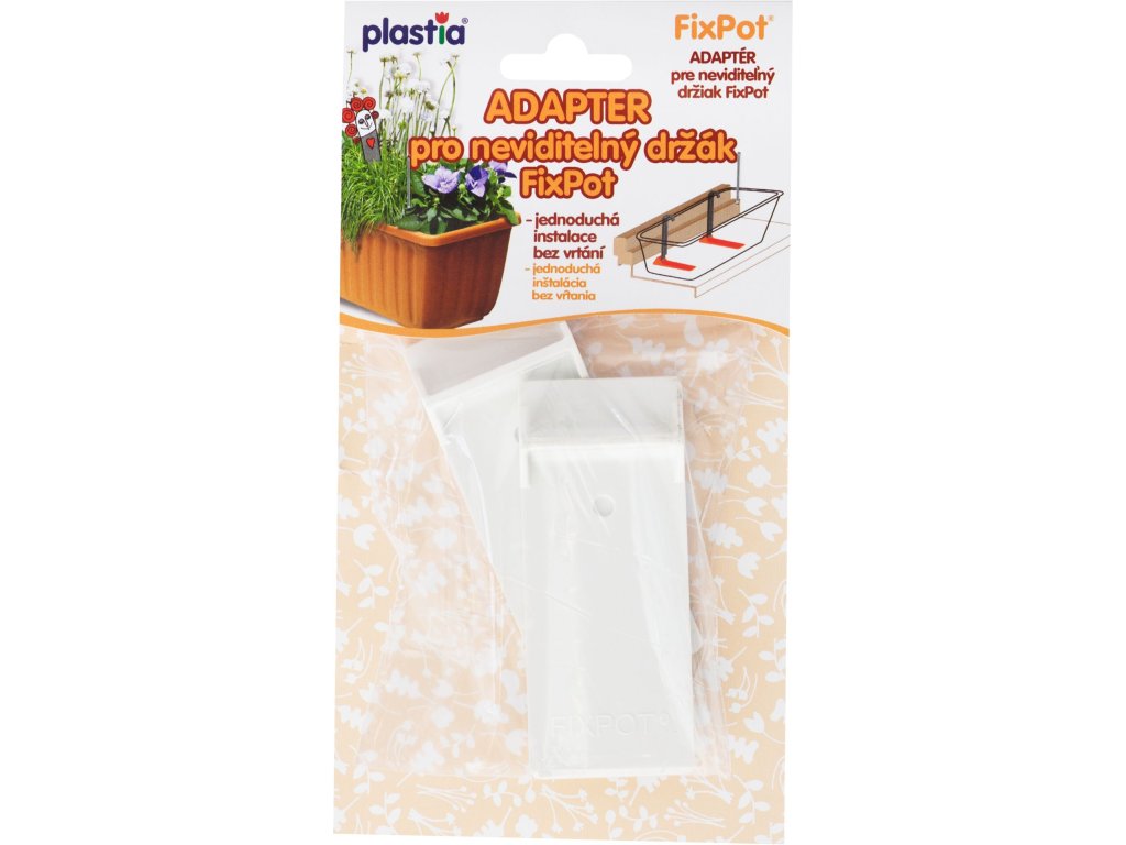 Adaptér k držáku na truhlík FIXPOT, který slouží k nalepení na parapet. Držák umožňuje neviditelné uchycení truhlíku na parapetu bez vrtání do fasády. Zabraňuje spadnutí truhlíku při jeho přetížení nebo při špatných klimatických podmínkách. Držák je možné použít u většiny plastových oken. Držák Fixpot je určen pro výšku truhlíku 10 - 19 cm a pro délku do 60 cm, je-li délka více než 60 cm, použijte další držák.