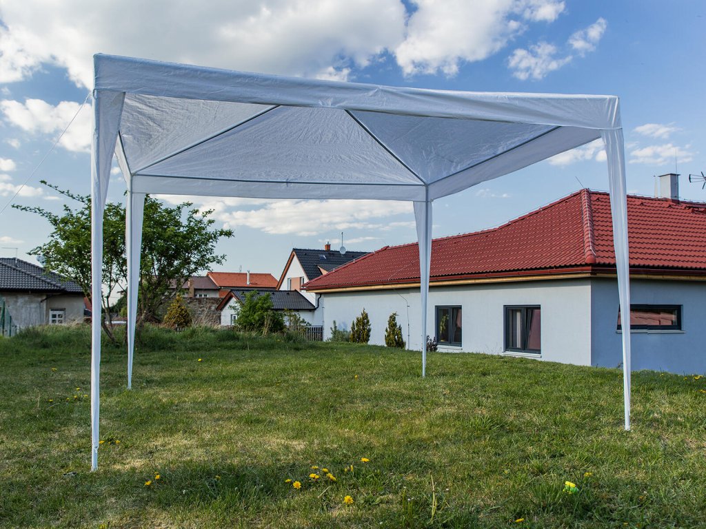 Altán zahradní 300 x 300 cm, BÍ. rozměry: 300 x 300 cm materiál: PE 110 g barva: bílá Altán párty lze libovolně přemísťovat, snadno se s ním manipuluje. Altán má stabilní konstrukci a velmi dobře chrání před slunečním svitem.Doplňkové parametry