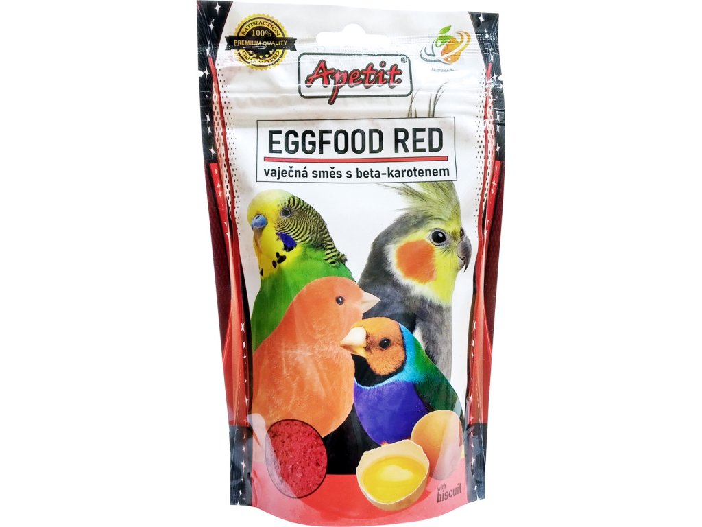 Apetit EGGFOOD RED - červená vaječná směs s beta-karotenem je doplňkovým krmivem pro výbornou trvalou kondici ptáků, zejména pro červené kanáry a ptáky s červeným zabarvením.