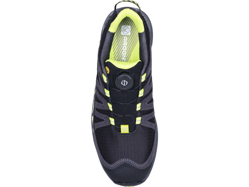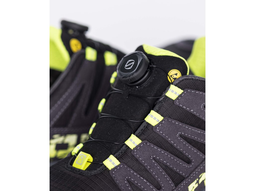 Bezpečnostní polobotka ENERDIG je ideální volbou pro pracovníky, kteří potřebují ochranu, komfort a zároveň vyžadují atraktivní moderní design. Svršek obuvi je vyroben z kombinace vodoodpudivého textilu a mikrovlákna, což zajišťuje vysokou odolnost a zároveň prodyšnost. Voděodolná membrána zabraňuje průniku vody dovnitř obuvi a zároveň poskytuje komfortní mikroklima. Anatomická stélka z pěnového materiálu se přizpůsobuje tvaru nohy a dobře tlumí nárazy při došlapu. Lehká sportovní podešev phylon/pryž je vhodná pro použití jak ve vnitřních, tak venkovních provozech. Obuv je vybavena nekovovými bezpečnostními komponenty a dosahuje antistatiky úrovně ESD. Uzavírání pomocí polohovacího kolečka posouvá uživatelský komfort na novou úroveň. Jde o špičkový univerzální model vhodný pro široké využití v různých typech pracovního prostředí.