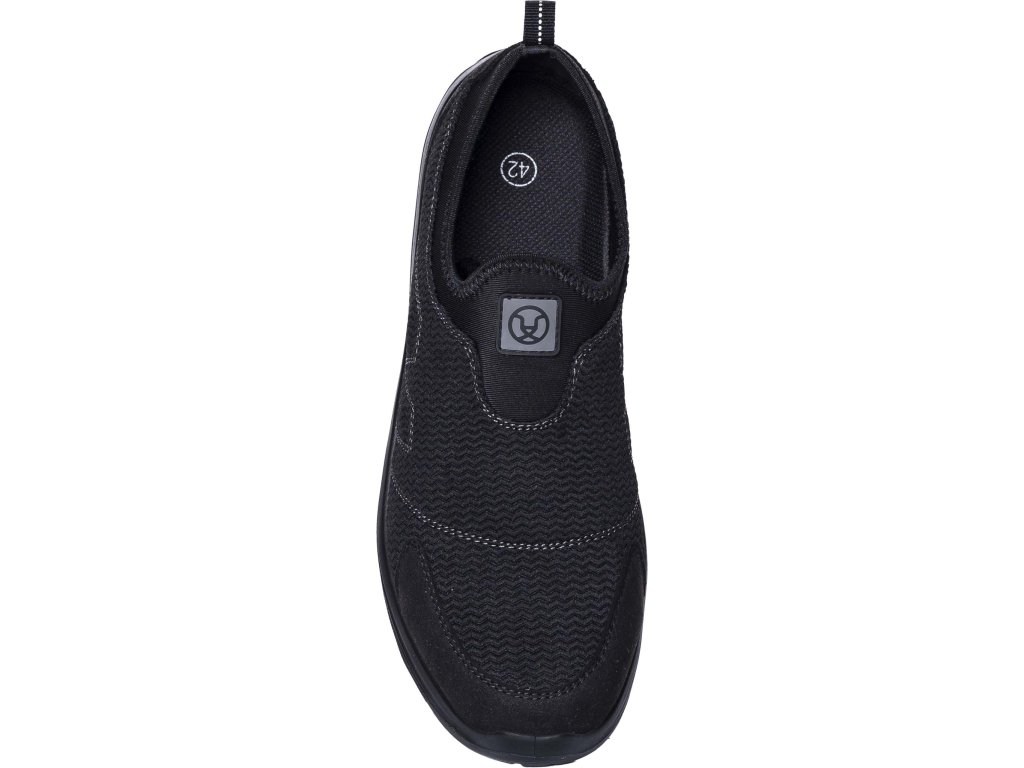 Bezpečnostní nazouvací mokasín s prodyšným svrškem na dvoukomponentní nástřikové podešvi PU/PU. Lehká tenká podešev s oblou patou je vhodná pro řízení vozidel i různé pracovní činnosti ve vnitřním prostředí. Snadné a rychlé nazouvání a vyzouvání obuvi.
