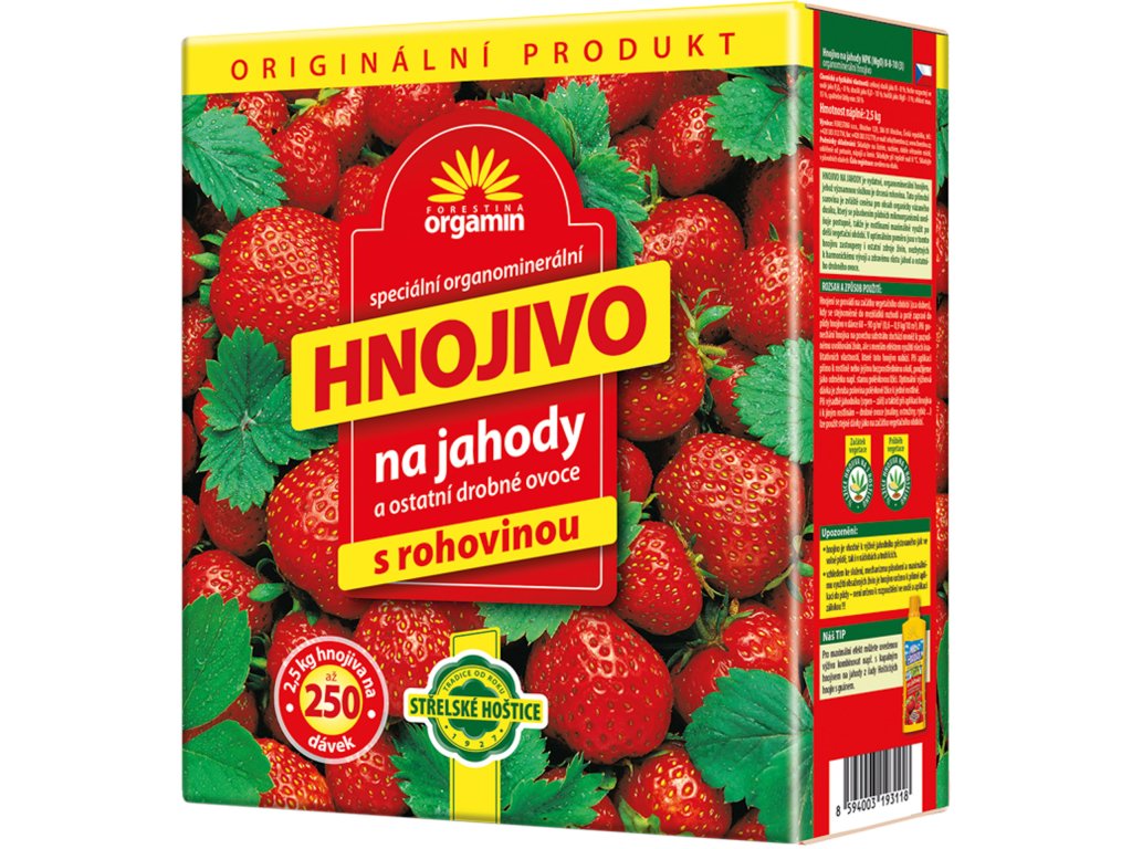 Orgamin na jahody a ostatní drobné ovoce je vydatné, ekologicky příznivé organicko-minerální hnojivo, jehož významnou složkou je drcená rohovina. Tato přírodní surovina je zvláště ceněna pro obsah organicky vázaného dusíku, který se působením půdních mikroorganismů uvolňuje postupně, takže je rostlinami maximálně využit po delší vegetační obobí. V optimálním poměru jsou v tomto hnojivu zastoupeny i ostatní zdroje živin, nezbytných k harmonickému vývoji, a zdravému růstu jahod a ostatního drobného ovoce.