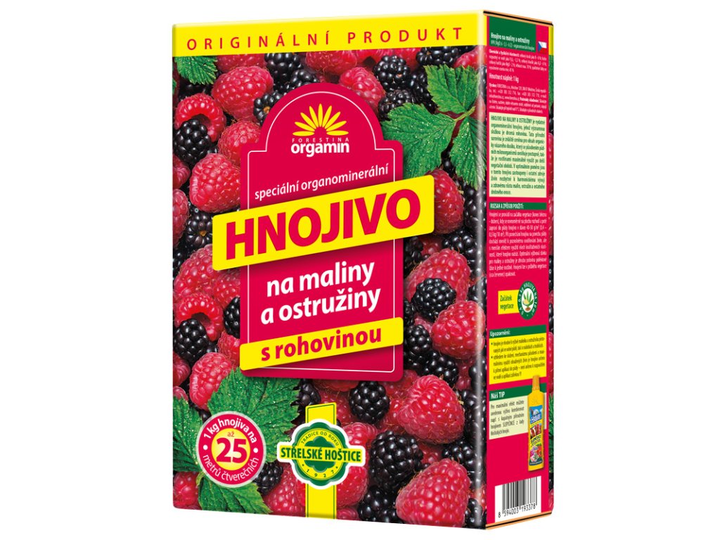 Orgamin na maliny a ostružiny je vydatné, ekologicky příznivé organicko-minerální hnojivo, jehož významnou složkou je drcená rohovina. Tato přírodní surovina je zvláště ceněna pro obsah organicky vázaného dusíku, který se působením půdních mikroorganismů uvolňuje postupně, takže je rostlinami maximálně využit po delší vegetační obobí. V optimálním poměru jsou v tomto hnojivu zastoupeny i ostatní zdroje živin, nezbytných k harmonickému vývoji a zdravému růstu malin a ostružin.
