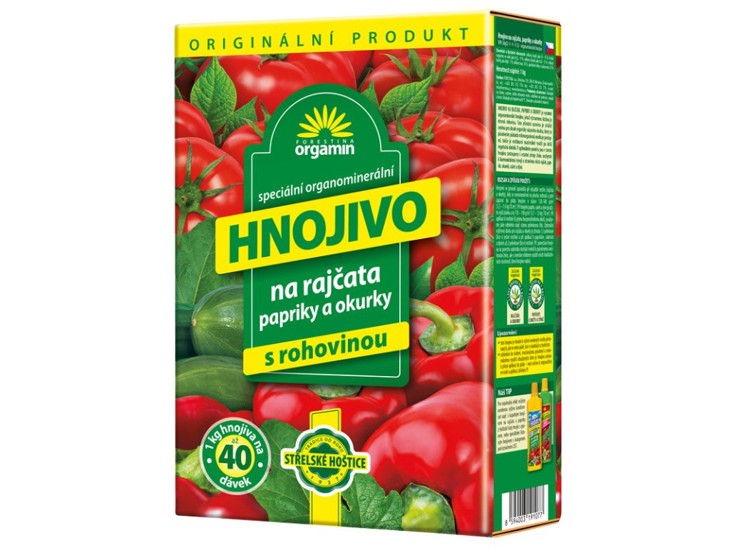 Orgamin na rajčata, papriky a okurky je vydatné, ekologicky příznivé organicko-minerální hnojivo, jehož významnou složkou je drcená rohovina. Tato přírodní surovina je zvláště ceněna pro obsah organicky vázaného dusíku, který se působením půdních mikroorganismů uvolňuje postupně, takže je rostlinami maximálně využit po delší vegetační obobí. V optimálním poměru jsou v tomto hnojivu zastoupeny i ostatní zdroje živin, nezbytných k harmonickému vývoji a zdravému růstu rajčat, paprik, okurek, cuket a dýní.