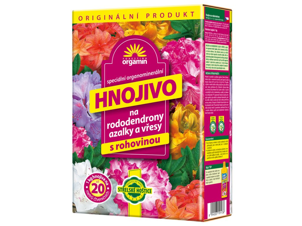 Orgamin na rododendrony, azalky a vřesy je vydatné, ekologicky příznivé organicko-minerální hnojivo, jehož významnou složkou je drcená rohovina. Tato přírodní surovina je zvláště ceněna pro obsah organicky vázaného dusíku, který se působením půdních mikroorganismů uvolňuje postupně, takže je rostlinami maximálně využit po delší vegetační obobí. V optimálním poměru jsou v tomto hnojivu zastoupeny i ostatní zdroje živin, nezbytné k harmonickému vývoji a růstu všech vápnostřežných rostlin.