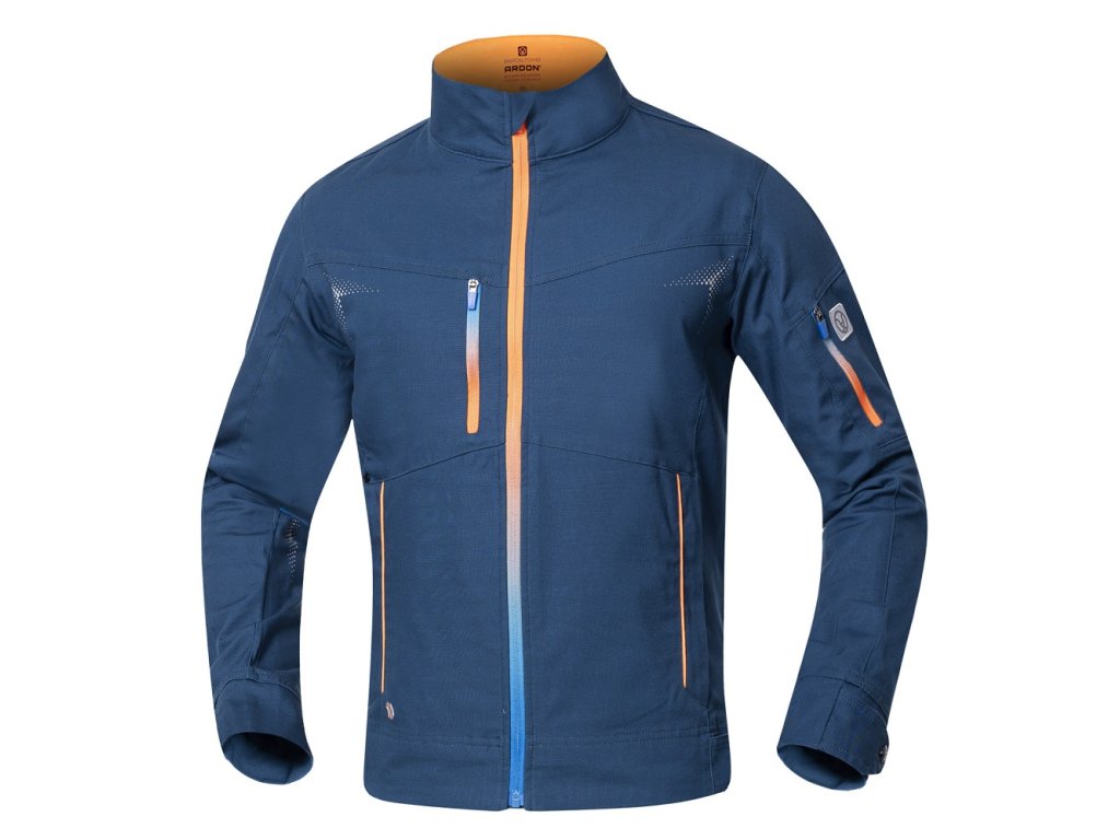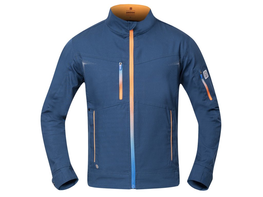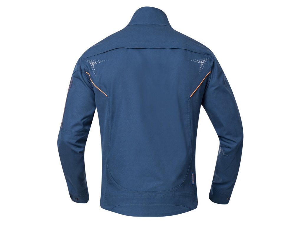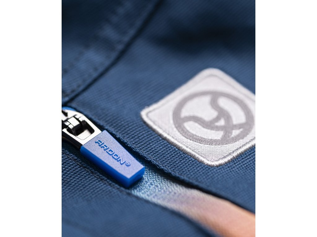 Strečová bavlněná montérková blůza ze speciálního materiálu Amalytton®, který vyniká zvýšenou pevnostía hladkým, jemným povrchem. Sníženou gramáž ocenítedíky příjemnému pocitu při nošení. Na exponovaných partiích je použitý odolný a čtyřsměrně elastický materiál Tabiflex®. Blůza se stojáčkem má vysocefunkční ergonomický 3D střih SLIM FIT, který zvýrazňuje siluetu. Je vybavena průběžným zapínáním na zips krytkou brady, 1 zipovou náprsní kapsou, 1 zipovou kapsou na levém rukávu, 2 zipovými bočními kapsami,má nastavitelnou šířku rukávů a spodního lemu blůzy pomocí druků. Levá horní část blůzy je designována pro umístění firemního loga. Zadní díl blůzy je vybaven funkčním odvětráváním, trojité prošití v namáhaných partiích. Zvýšenou viditelnost uživatele zajišťují dynamické reflexní 3D potisky a hi-vis doplňky.