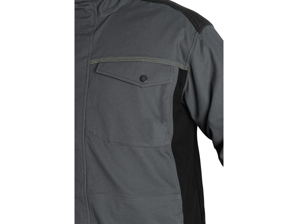 Pánská montérková blůza, strečová tkanina umožňující volný pohyb, ramena vyztužena 600D polyesterem, rukávy s nastavitelnou manžetou, kapsička s klopou na levém rukávu, kryté zapínání na zip a druky, náprsní kapsy - na druk a zip, boční kapsy na zip, regulovatelný pas, větrání na zádech, reflexní doplňky. Doporučené použití: strojírenství, stavebnictví, lehký průmysl, automobilový průmysl, logistika, skladová manipulace, spedice, autoservisy, údržba, montáže, zemědělství, zahrada, hobby.Doplňkové parametry