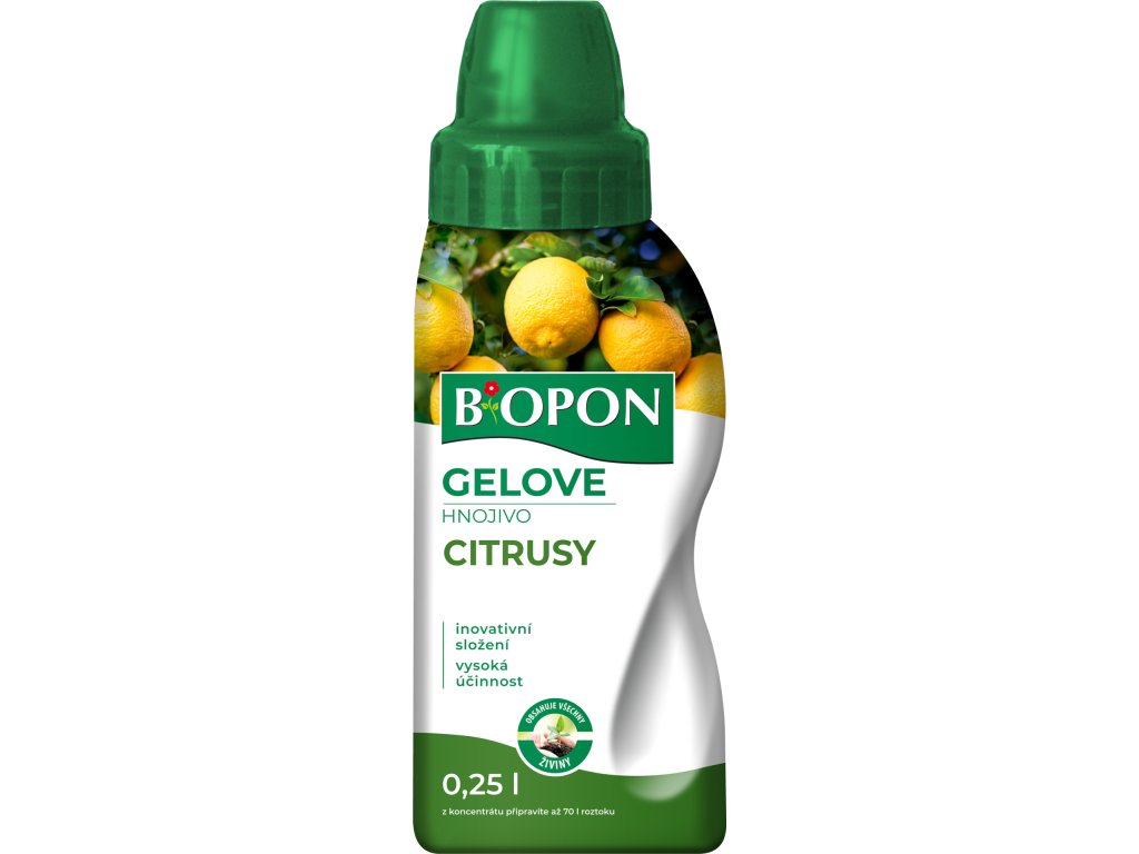 Inovativní a mimořádně účinné hnojivo na všechny druhy citrusů. Díky obsahu draslíku podporuje správnou tvorbu plodů a jejich zrání. Díky optimálnímu obsahu dusíku přispívá k optimálnímu růstu a vývoji citrusů. Díky hutné konzistenci gelu, který je rozpustný ve vodě, jsou živiny z hnojiva pro rostliny dobře vstřebatelné. Hnojivo navíc vyniká snadností použití. Při nalévání hnojiva nedochází k jeho rozlití mimo vymezený prostor, což umožňuje přesné dávkování. Při pravidelném používání pomáhá udržovat citrusy v dobrém stavu po celý rok.