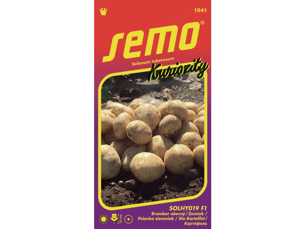 SolHY 012 F1 (kód 1941) – kolekce KURIOZITY - Co takhle vypěstovat brambory ze semínek – je tak trochu výzva pro zaryté zahrádkáře. Unikátní koncept pro malé zahrady a terasy, protože brambory můžeme zkusit vypěstovat přímo ve větší nádobě. Lze také pěstovat i ve volné půdě. Předpěstované sazenice vysazujeme v polovině května, kdy již nehrozí přízemní mrazíky. Technologie pěstování je pak shodná s pěstováním brambor ze sadby.
