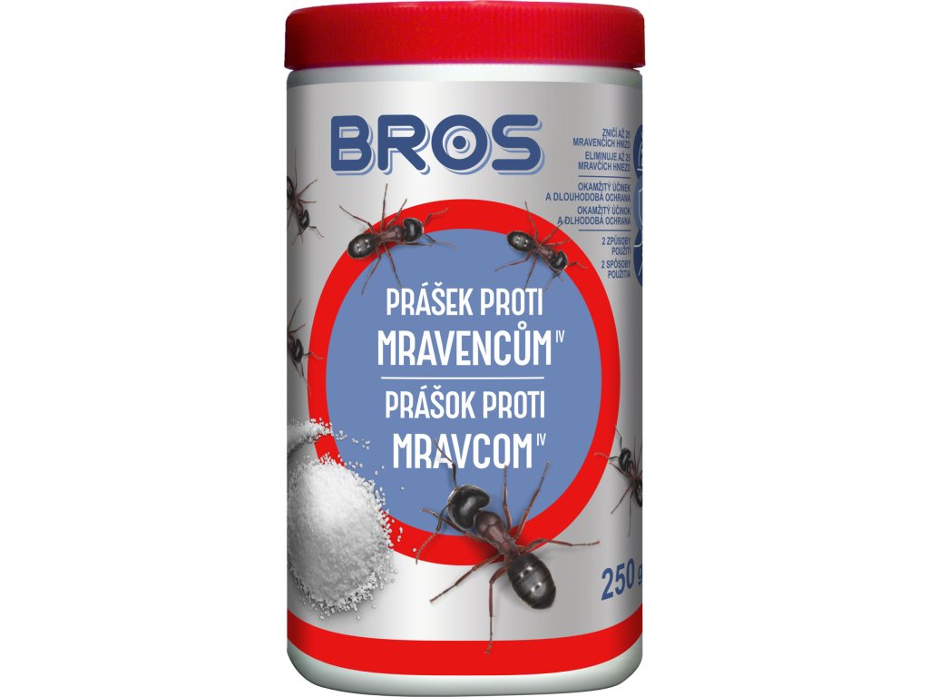 - POSYPEM: V místnostech a uzavřených prostorách - nasypte tenkou vrstvu prášku na stezky, po kterých se pohybují mravenci. Venkovní použití - nasypte tenkou vrstvu prášku v množství asi 10 g na 1 m2 vedle kolonie mravenců a na jejich stezky.
