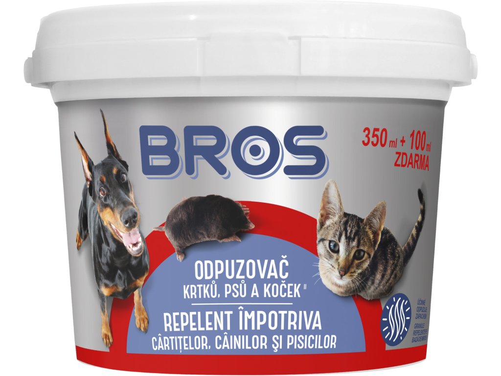 Bros - práškový odpuzovač krtků, psů a koček 350 ml + 100 ml zdarma
