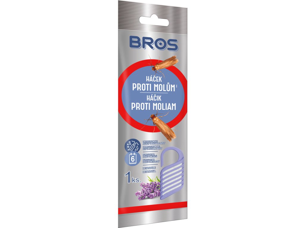 Bros závěsný háček proti šatním molům účinně chrání oděvy, látky a kožichy před poškozením moly. Závěs lze používat v šatnících, skříních, zásuvkách, kufrech apod.. Závěs dává oděvům příjemnou levandulovou vůni. Přípravek působí ihned po vyjmutí z obalu, je účinný po dobu 3 měsíců.