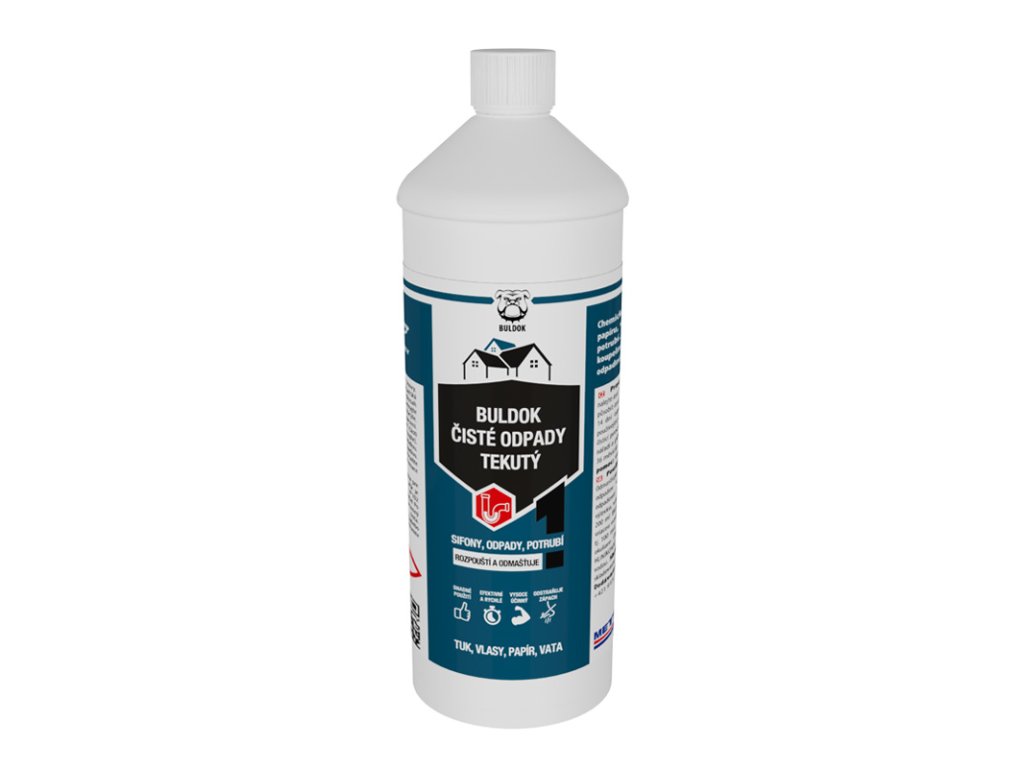 Silný tekutý prostředek, který rozpouští mastnotu, vlasy a organické zbytky v sifonech a domácích odpadech. Chemicky rozpouští organické zbytky včetně vlasů, papíru, vaty. Odmašťuje a zprůchodňuje odpadní sifony a potrubí. Používá se při zanesení odpadů v kuchyních, koupelnách, prádelnách apod. Preventivně udržuje odpadní potrubí průchodná.BULDOK čisté odpady tekutý Čistí, odmašťuje, rozpouští vlasy a jiné organické zbytky v sifonech a domovních odpadech z kuchyní, koupelen apod.