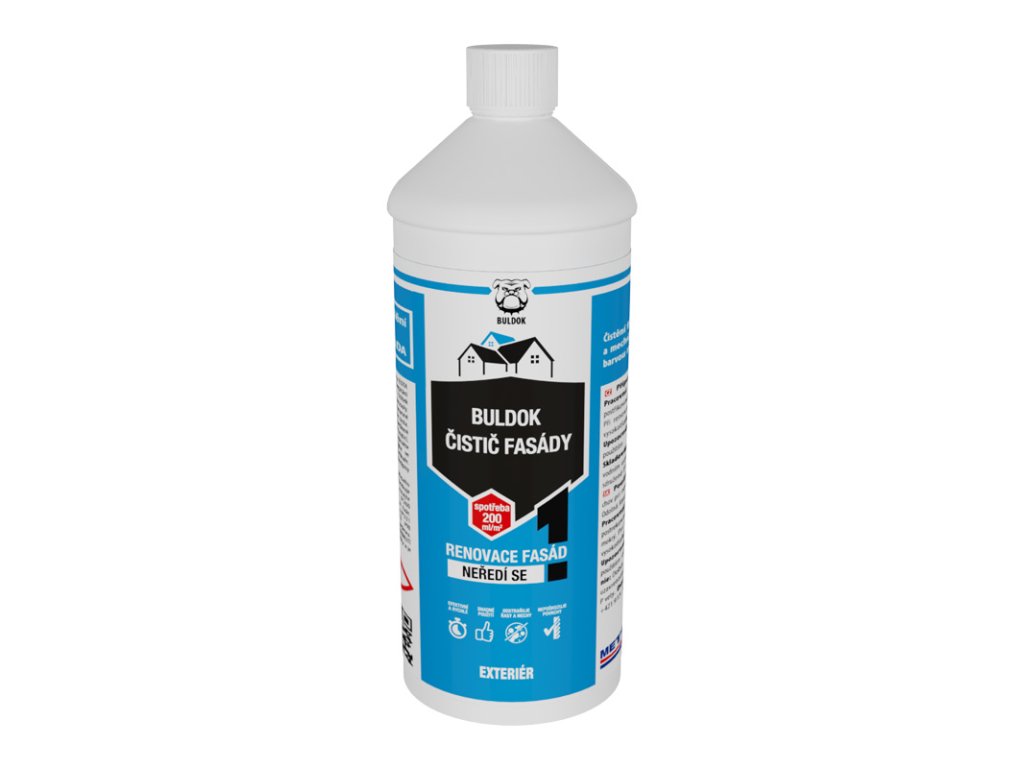 Je čisticí prostředek na odstraňování nečistot a porostů na fasádách. Čistění fasád od mechanických nečistot nebo porostů řas a mechů při renovačních pracích (před nátěrem fasádní barvou nebo přípravkem Odolná fasáda ČS). Snadné použití, neupravuje se, neředí se. Nepoškozuje čištěné povrchy. Funguje na principu chemického čištění, rozpouštění.BULDOK Čistič fasády je čisticí prostředek na odstraňování nečistot a porostů na fasádách.