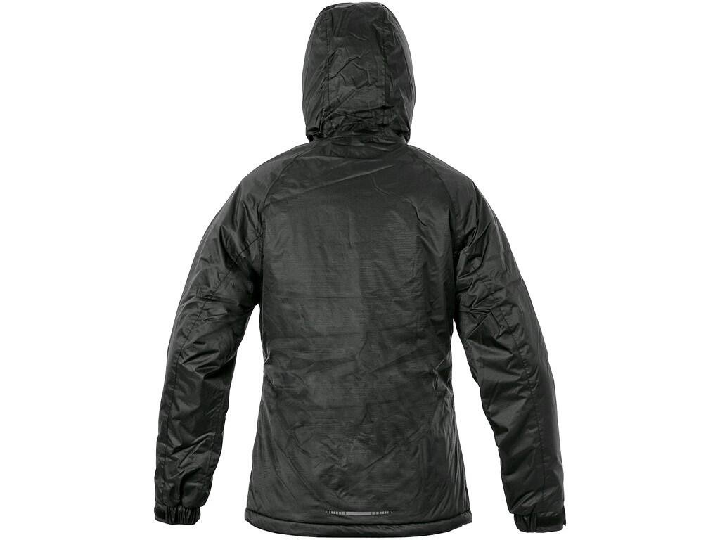 Dámská zateplená bunda, odolná proti vodě a větru, kapuce napevno, regulovatelné manžety na rukávech, spodní kapsy na zip, reflexní doplňky, stahování v dolním okraji, vnitřní náprsní kapsa, lepené švy, odolnost materiálu proti průniku vody 2 000 mm, paropropustnost 2 000 g/m2/24h.Doplňkové parametry