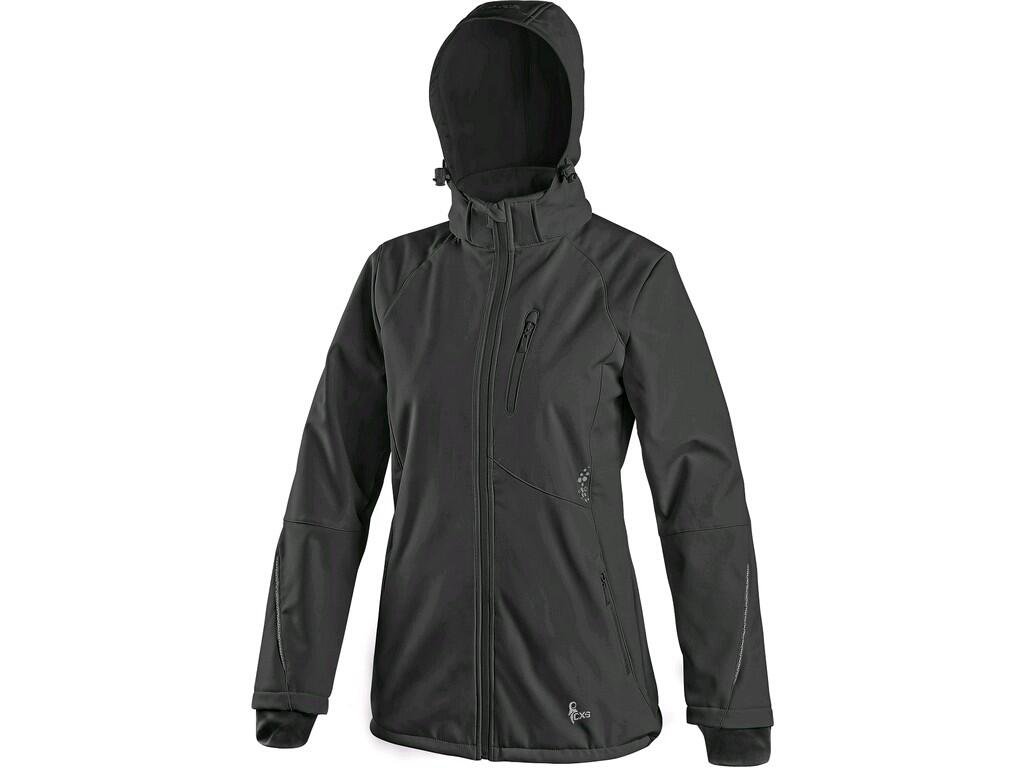 Dámská softshellová bunda s odepínací kapucí, odolná proti vodě a větru, zapínaní na zip, větrání v podpaží, náprsní kapsa na zip, boční kapsy na zip, rukávy s vnitřními manžetami, stahování v dolním okraji, reflexní doplňky, TPU membrána. Odolnost materiálu proti průniku vody 5 000 mm mimo oblast švů, paropropustnost 5 000 g/m2/24h.Doplňkové parametry
