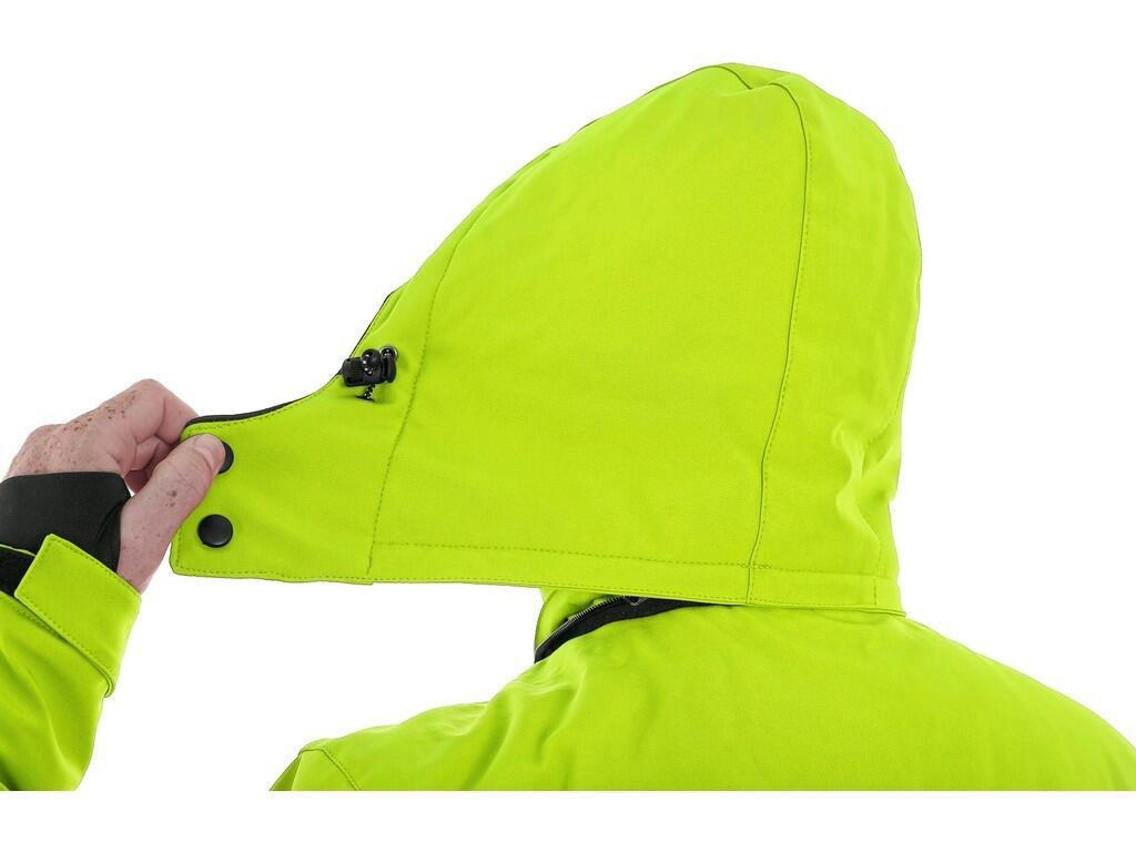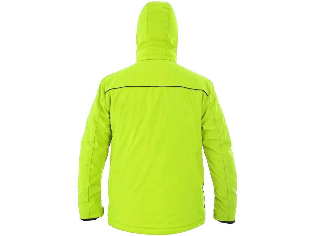 Pánská zateplená softshellová bunda, odolná proti vodě a větru, větrání v podpaží, odepínací kapuce, regulovatelná manžeta na rukávech a pružná manžeta v rukávech, stahování v dolním okraji, černé reflexní výpustky, TPU membrána, odolnost materiálu proti průniku vody 10 000 mm mimo oblast švů, paropropustnost 3 000 g/m2/24 h, podšívka je kombinací materiálů s fleecem, na levém spodním rukávu kapsička na zip, 2 spodní kapsy na zip, vnitřní kapsa.Doplňkové parametry