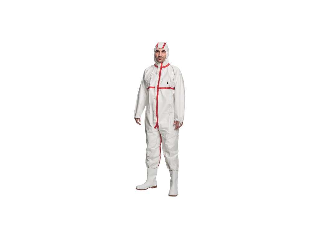 • ochranná antistatická jednorázová kombinéza s kapucí, vhodná pro ochranu proti nebezpečným mirkoorganizmům • mikroporézní paropropustnou vrstvou, přelepenými švy, samolepící klopou na zip a gumičkou stahovatelnými rukávy a nohavicemi • je odolná řadě chemikálií • v ochraně proti postřiku kapalnými chemikáliemi patří do kategorie CE III • v ochraně proti kapalným aerosolům kategorie typu 4B • v ochraně proti průniku pevných částic a ochraně proti aerosolům typu 5B • v ochraně proti postřiku kapalnými chemikáliemi typu 6B • v ochraně proti kontaminaci radioaktivními částicemi do kategorie Class 2Doplňkové parametry