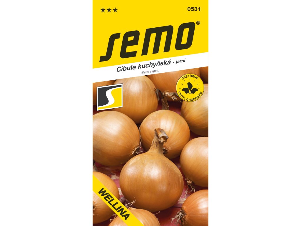 Cibule WELLINA - středně raná odrůda jarní cibule typu Rijnsburger s vegetační dobou 130 dní od výsevu. Je vhodná jak pro přímé setí, tak i pro výrobu sazečky. Má velmi vysokou odolnost proti vybíhání do květu. Cibule kulovitého tvaru mají žlutou až žlutohnědou barvu suknice. Odrůda má velmi dlouhou skladovatelnost.