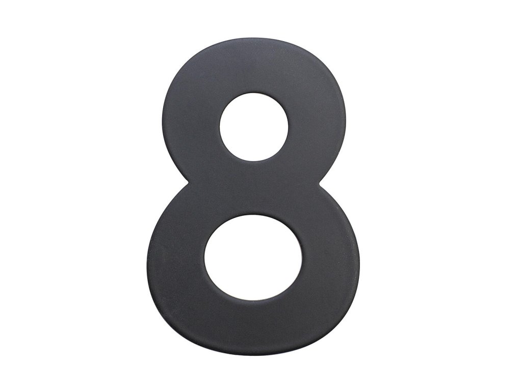 Číslo domovní č. 8, 75 mm, nerez ČER. výška: 75 mm materiál: nerez povrch: matná černá (CE) Montáž lepením pomocí oboustranné lepící pásky „3M“. Vhodné pro středně hrubé a hladké povrchy. Balení vč. oboustranné lepící pásky „3M“. Nerezové číslo v plochém „2D“ provedení.Doplňkové parametry