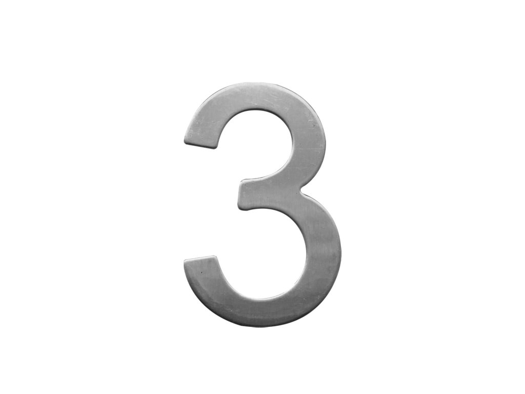 Číslo domovní STAR č. 3, 75 mm, nerez. výška: 75 mm materiál: nerez Nerezové domovní číslice.Doplňkové parametry