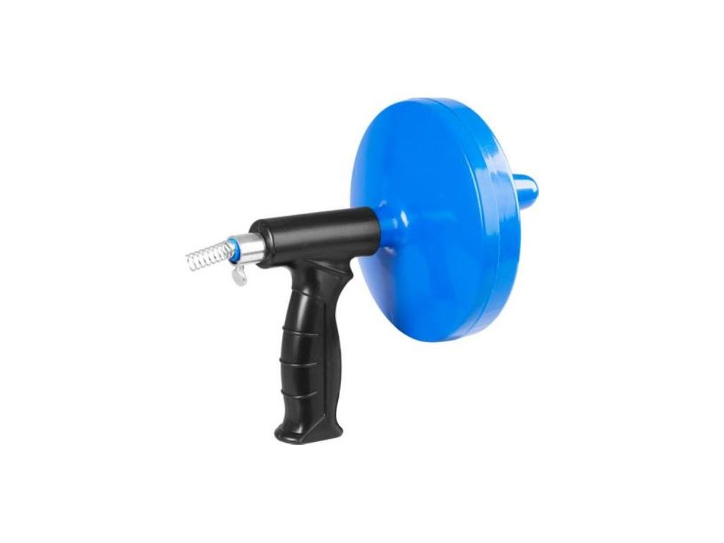 - pro práci - ručně vytáhnout spirálu do potřebné délky (max. 4 m), otáčení klikou nebo vrtačkou umožňuje lepší prostupnost čističe v potrubí, po praci očistit a zpět mechanicky zasunout zpět do plastového pouzdra