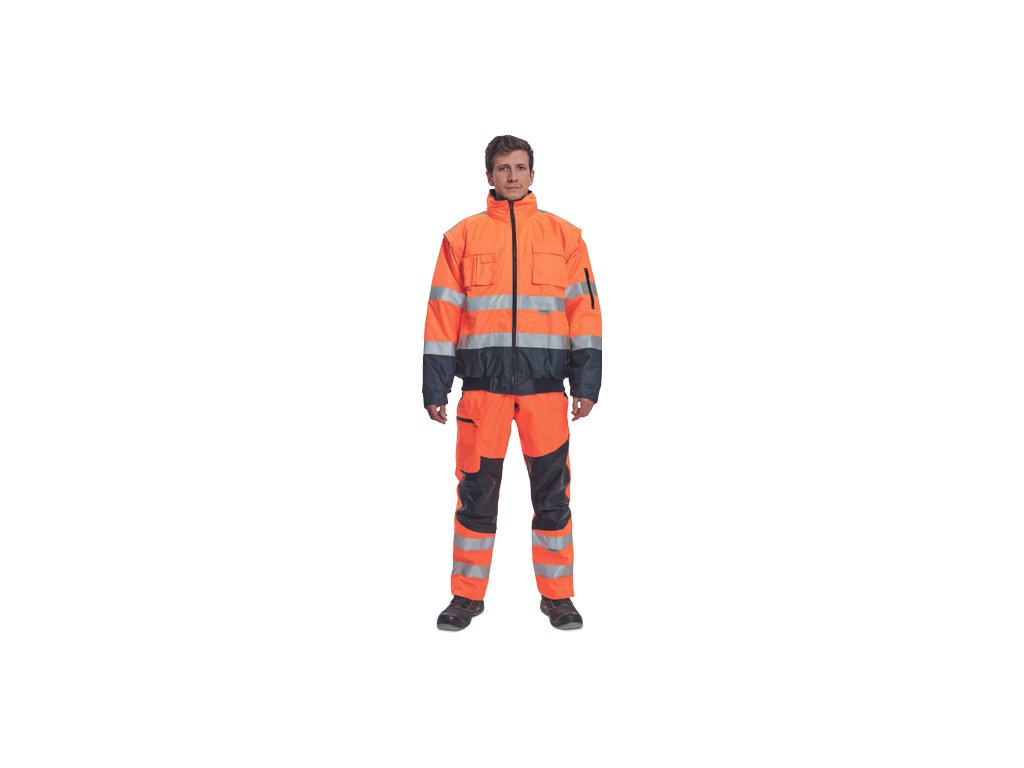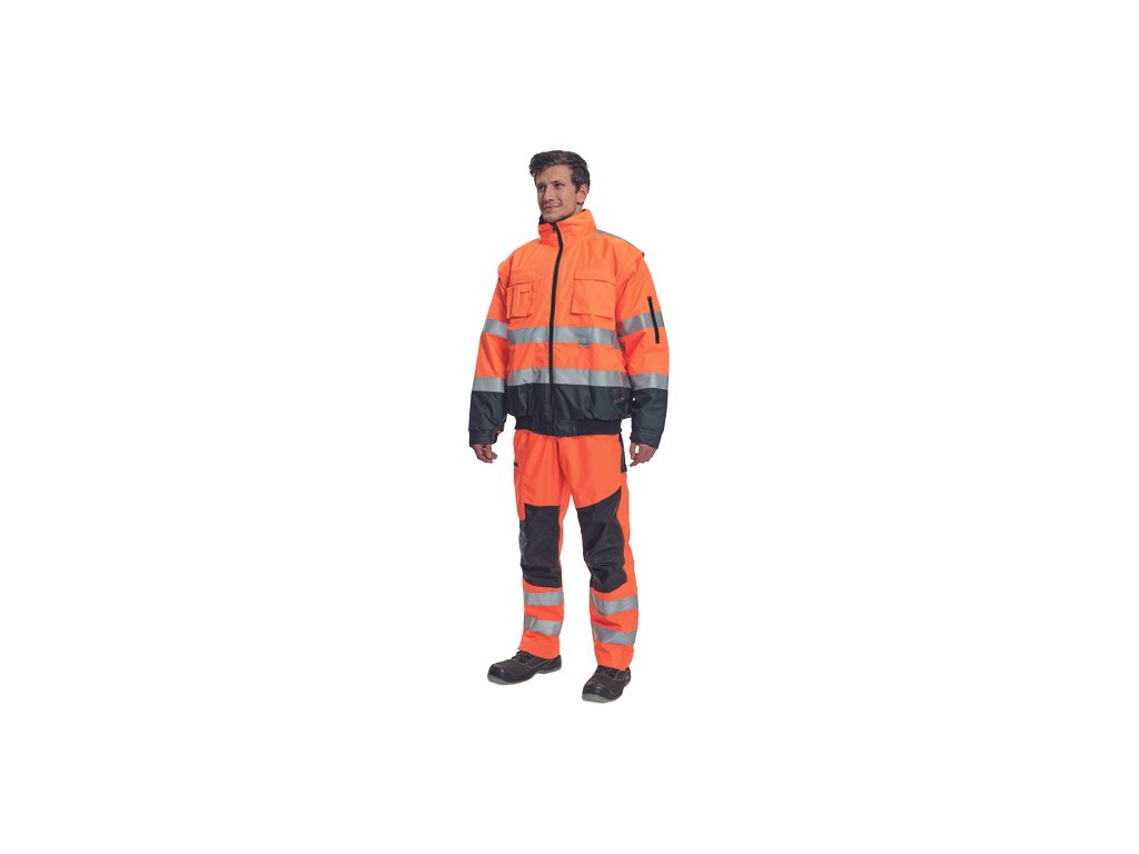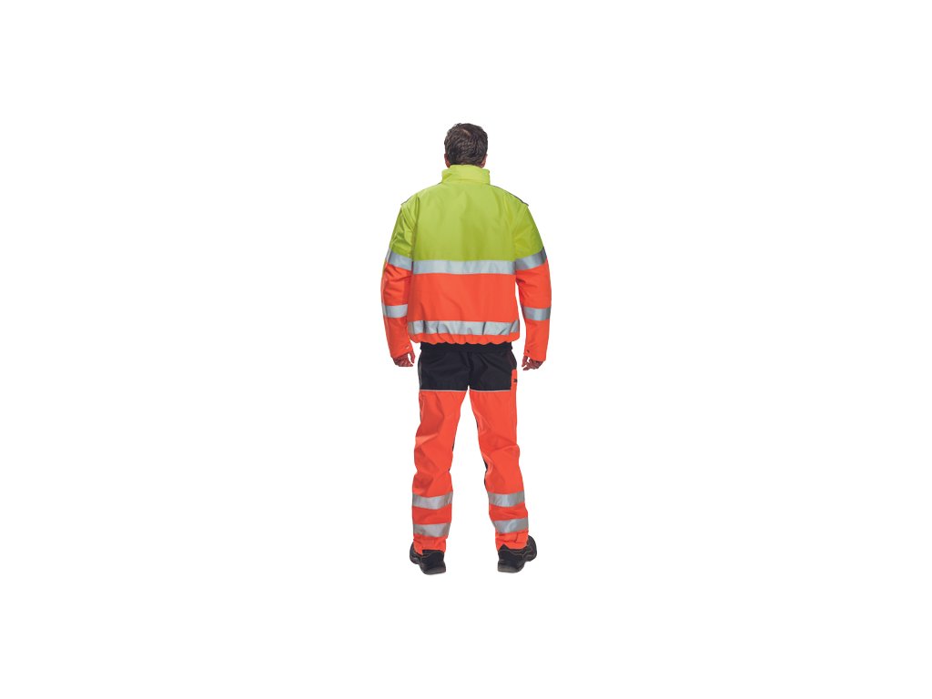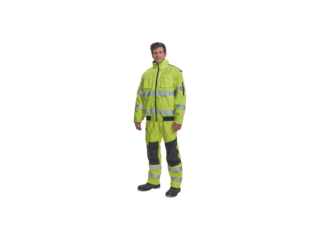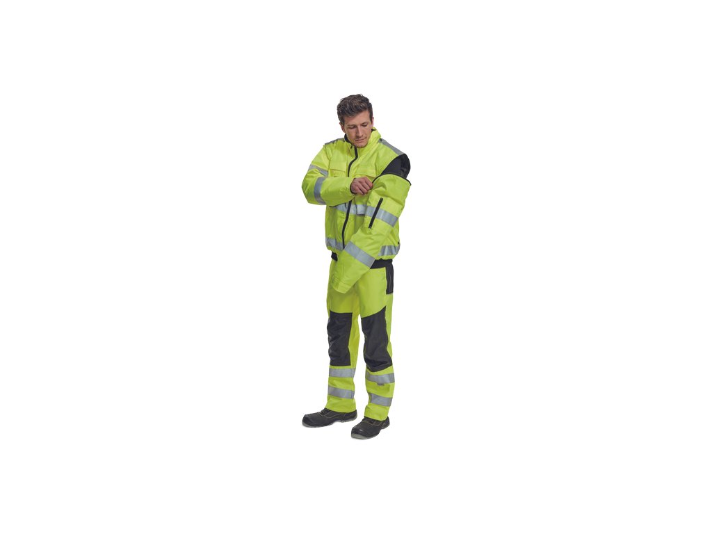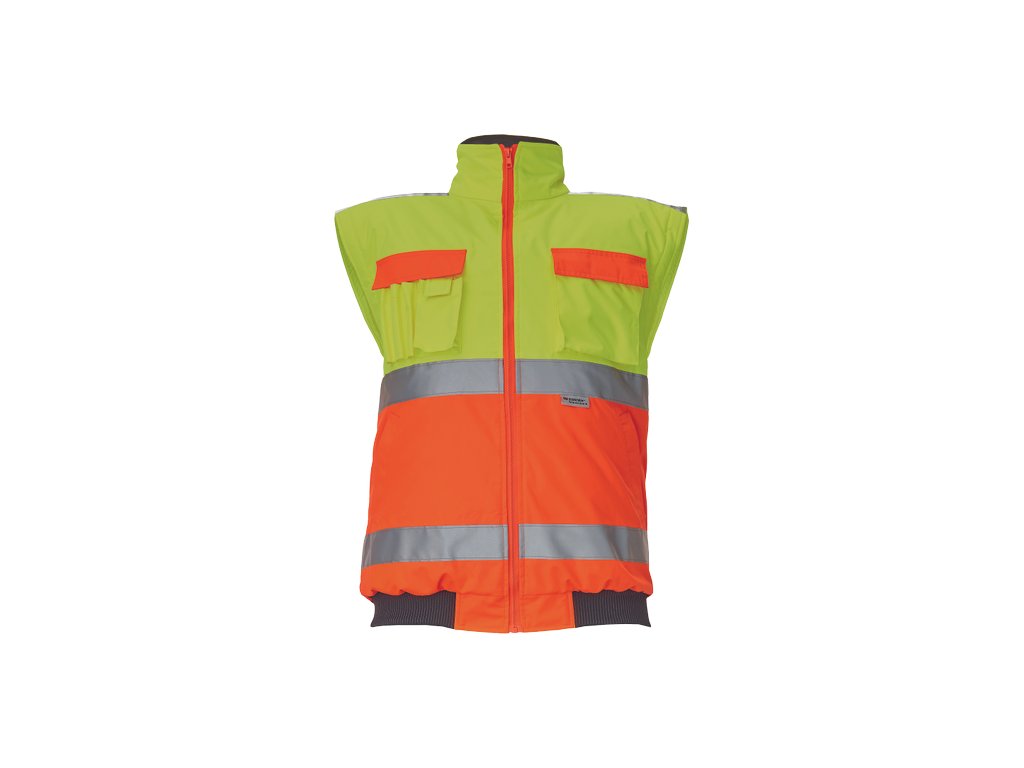 • pánská HI-VIS zimní nepromokavá bunda s odepínatelnými rukávy • kapuce integrovaná v límci • prodyšná • podlepené švy • 3M reflexní pruhy okolo pasu a rukávů • 2 boční kapsy • 2 náprsní kapsy • 1 malá kapsa na levém rukávu • nastavitelná šířka rukávů pomocí druků • elastický pasDoplňkové parametry