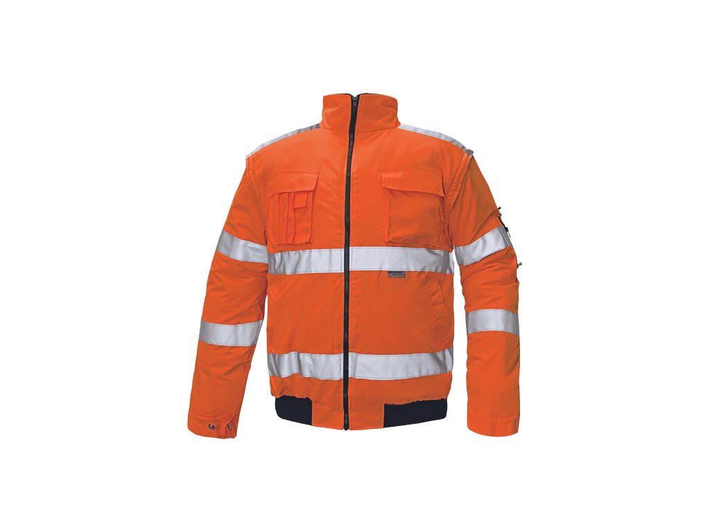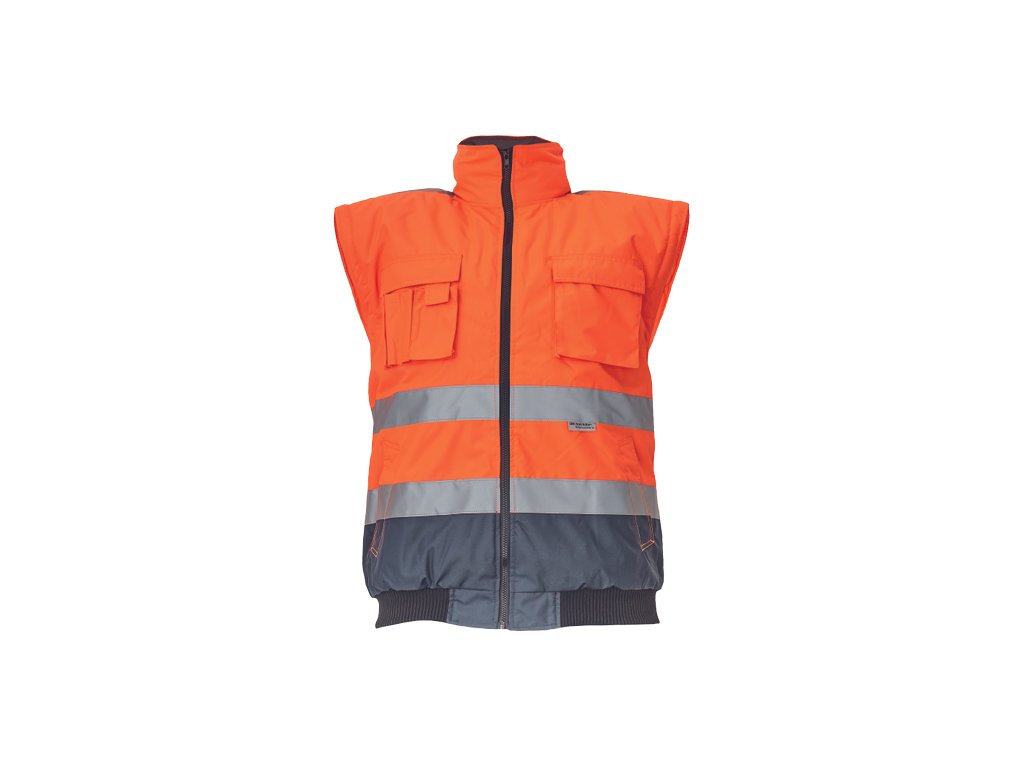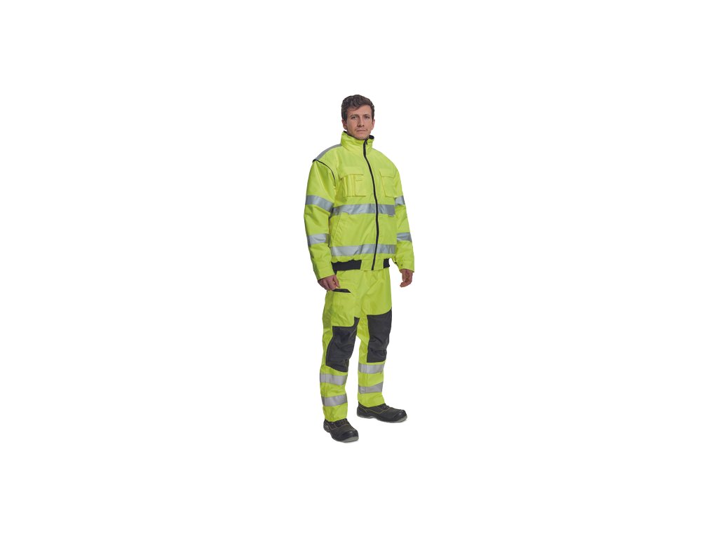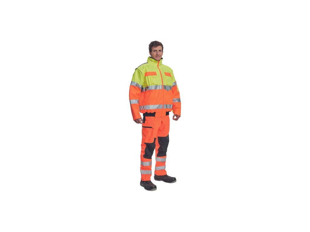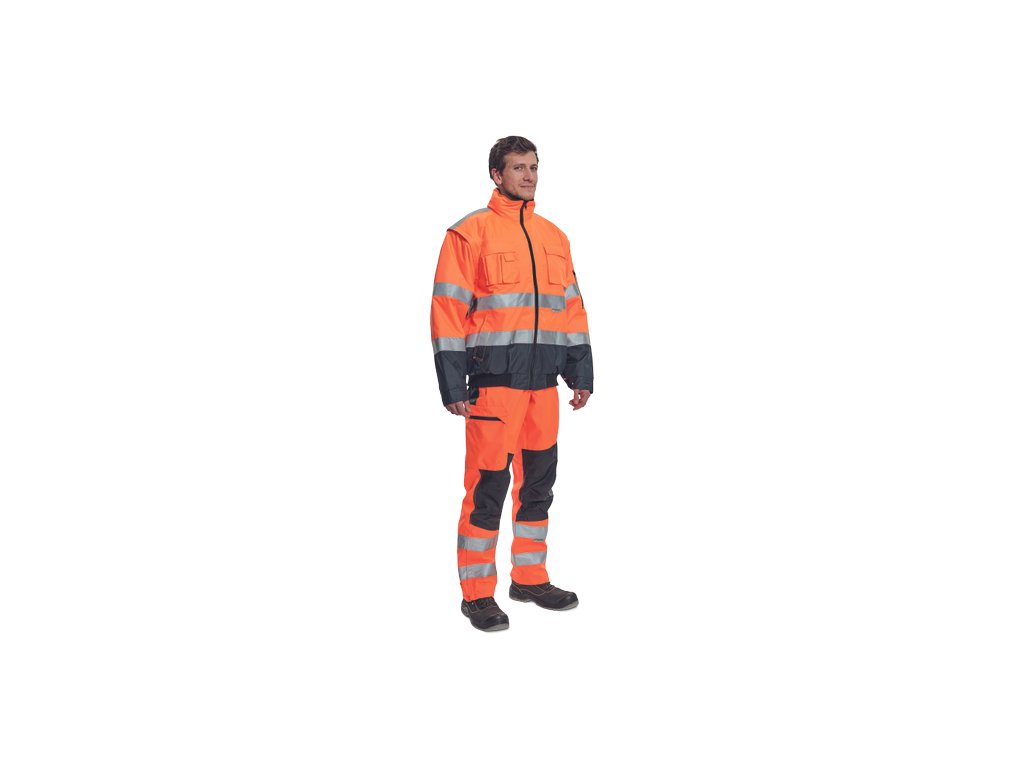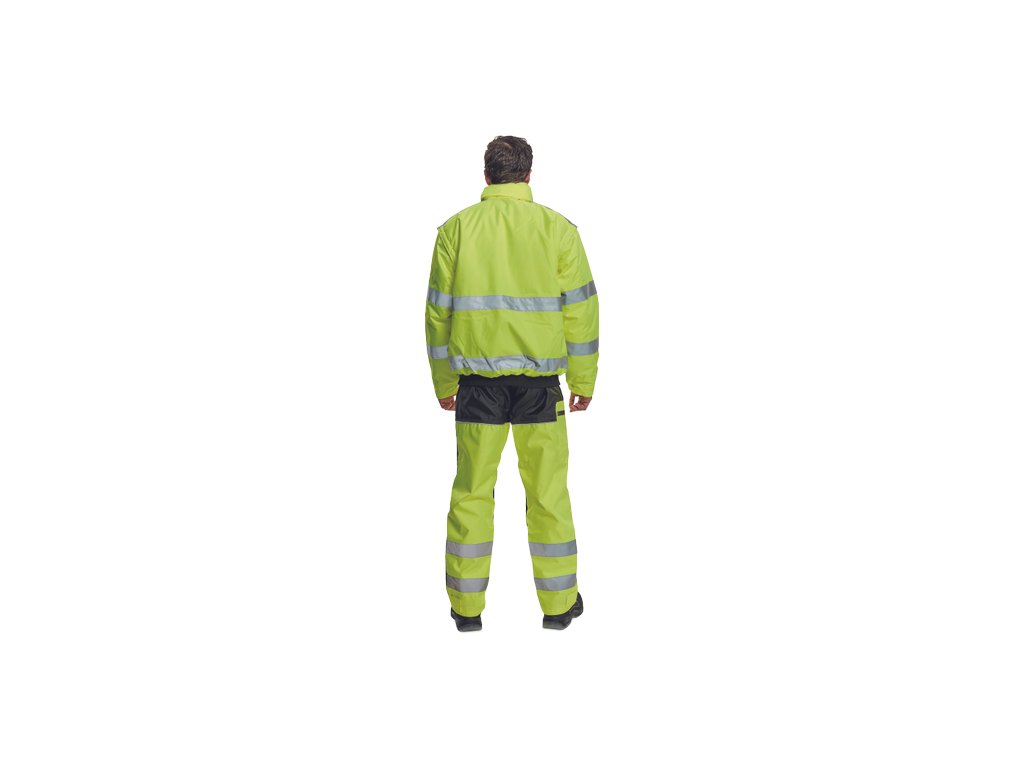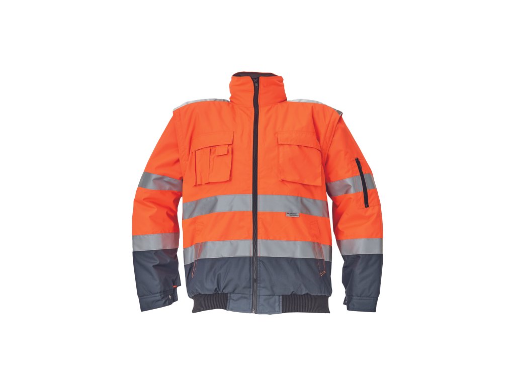 • pánská HI-VIS zimní nepromokavá bunda s odepínatelnými rukávy • kapuce integrovaná v límci • prodyšná • podlepené švy • 3M reflexní pruhy okolo pasu a rukávů • 2 boční kapsy • 2 náprsní kapsy • 1 malá kapsa na levém rukávu • nastavitelná šířka rukávů pomocí druků • elastický pasDoplňkové parametry