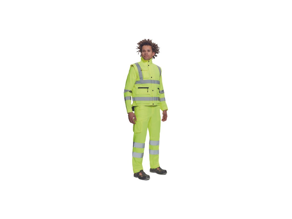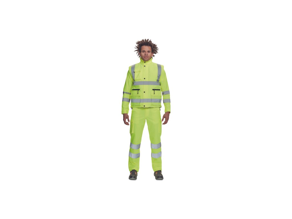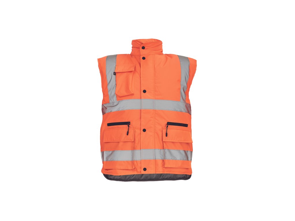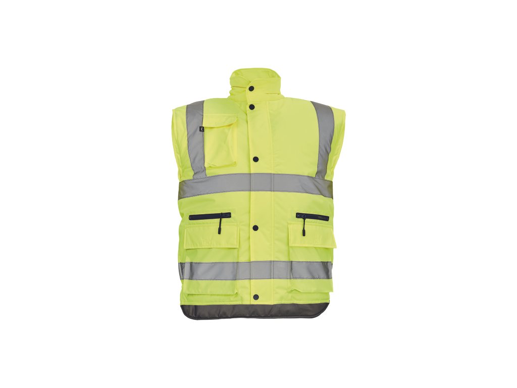 • pánská zateplená full HI-VIS vesta s reflexními pruhy přes ramena a v bocích • kapuce skrytá v límci • zapínání na zip kryté légou se zapínáním na druky • 2 přední multifunkční kapsy s klopou a zapínáním na zip • 1 náprsní kapsa s klopouDoplňkové parametry