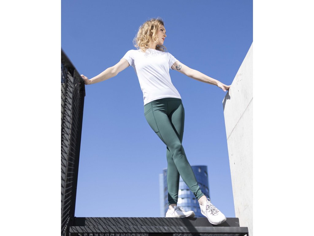 Dámské sportovní legíny se zvýšeným zesíleným pasem, vyvinuté speciálně pro ženy. Díky technologii širšího opasku perfektně sedí na postavě, zatímco praktické kapsy v bočním švu umožňují pohodlné uložení drobností. Počesaný nylon je lehký, prodyšný, příjemný na dotek a maximálně přizpůsobivý. Legíny jsou skvělou volbou pro sportovní aktivity i volný čas.