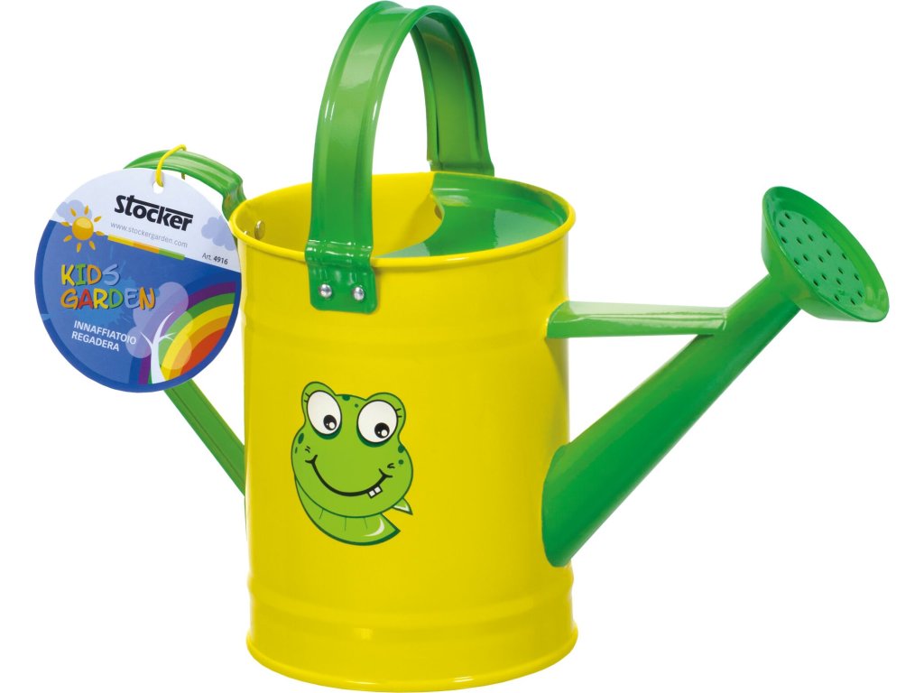 Dětská kovová konvička s kropítkem - žlutá barva konvičky s obrázkem s dětským motivem.