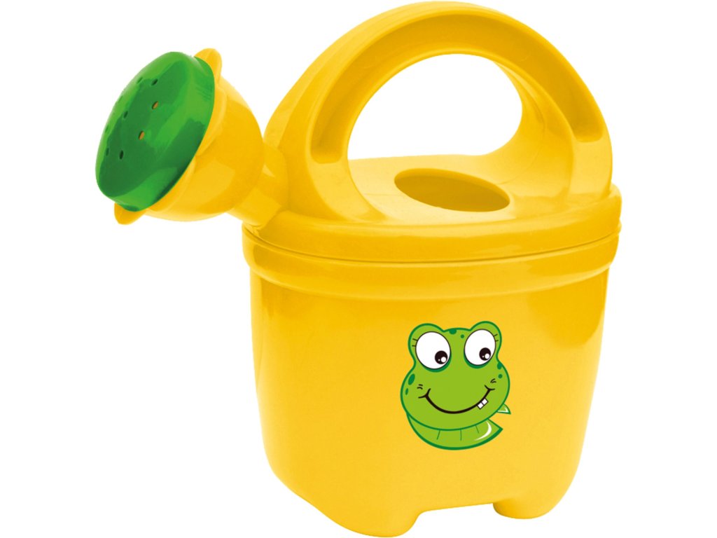 Dětská plastová konvička s kropítkem - žlutá barva konvičky s obrázkem s dětským motivem.