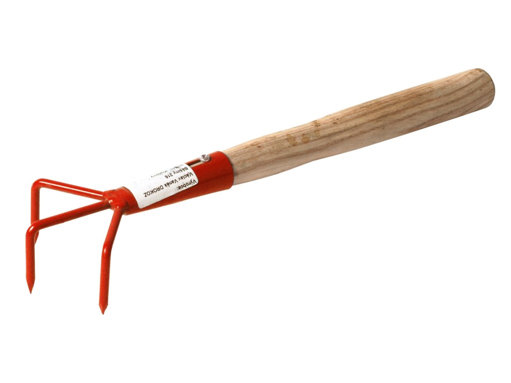 Popis:Drápek tříhrotý s násadou pro kypření půdy na záhonech a ve skleníku. Pracovní část je z kovu.