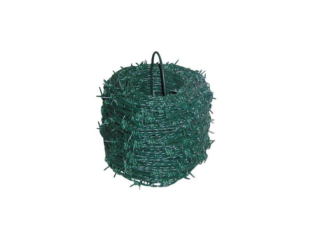 Drát ostnatý PH 2.4/2.0 mm /100 m. rozměry: 2.4/2.0 mm délka: 100 m rozměry balení: 25 x 25 x 30 cm hmotnost: 5,4 kg materiál: poplastovaný drát barva: zelená Slouží ke zvýšení zabezpečení oplocených objektů. Montuje se buď přímo na plotové sloupky, které musí být vyšší nebo pomocí držáku ostnatého drátu (pod úhlem 45°).Doplňkové parametry