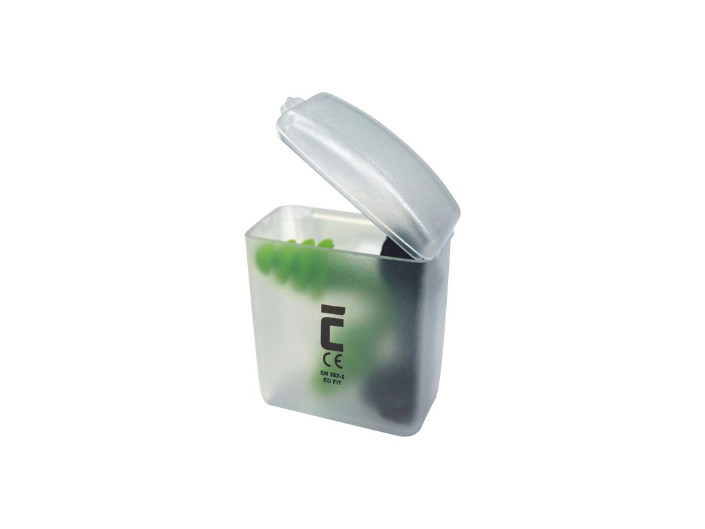 tvarované omyvatelné zátkové chrániče sluchu spojené lankem se zaváděcí rukojetí a čtyřmi velmi jemnými lamelami velmi příjemnými k pokožce a vhodnými pro téměř každou velikost zvukovodu; pouzdro k uložení s možností připevnění na opasek; EN 352-2Doplňkové parametry