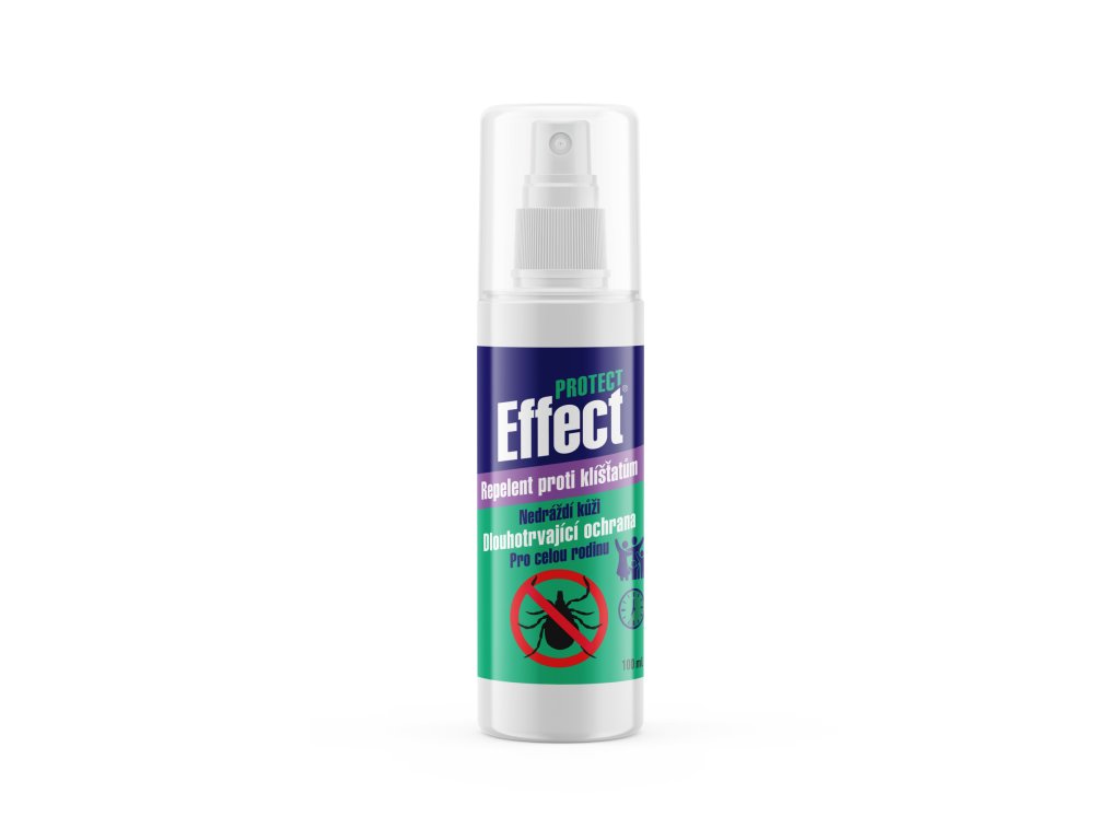 Effect Protect repelent proti klíšťatům - repelent pro osobní ochranu je velmi jemná pleťová voda, suché, nelepivé a krémovité konzistence, bez žádné zvláštní vůně. Výrobek je vhodný k použití pro celou rodinu, i pro menší děti. Výrobek je nekorodující a dermatologicky testovaný. Pro bezpečnost dětí a zabránění požití obsahuje přídavek hořkého činidla denatonium benzoátu. Výrobek je možné používat společně s mlékem na opalování