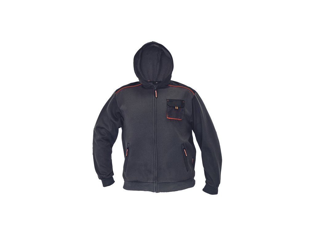 • moderní pánská mikina s kapucí a zapínáním na zip • 2 přední kapsy na zip • 1 malá náprsní kapsa • pružné manžety rukávů a lem v pase s příměsí elastanuDoplňkové parametry