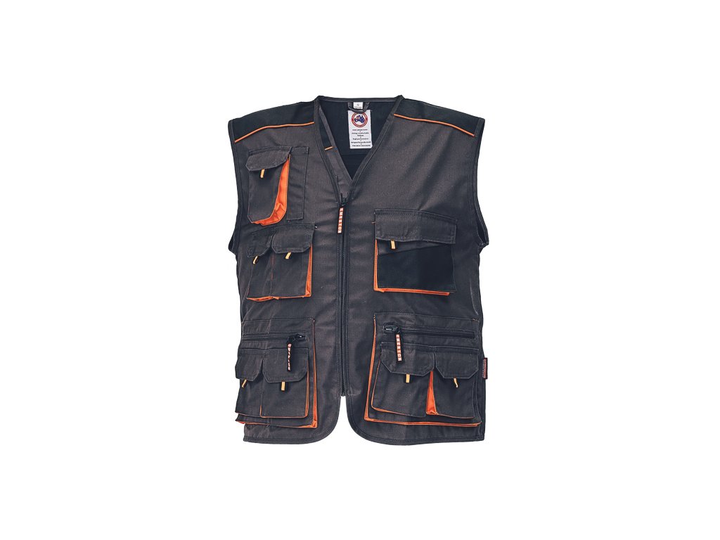 • pánská pracovní vesta vysoké odolnosti, zapínání na zip • 2 přední multifunkční kapsy • 2 náprsní multifunkční kapsy • 1 ramenní kapsa na mobilní telefon • Oxford 600D zesílení namáhaných místDoplňkové parametry