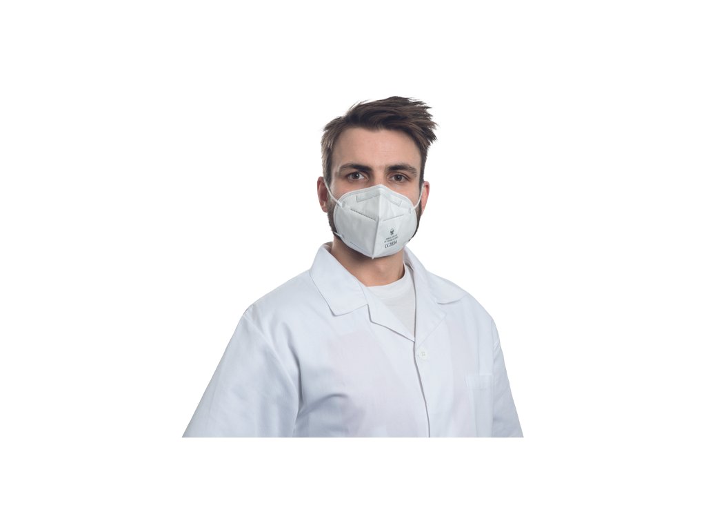 skládaný FFP2 respirátor s gumičkami s uchycením za uši; všitý měkký kovový nosník; pro lepší přizpůsobení využijte plastovou sponu na sepnutí gumiček za hlavou, která je součástí balení; balení obsahuje 50 kusů, každý kus je balen samostatně v pytlíkuDoplňkové parametry