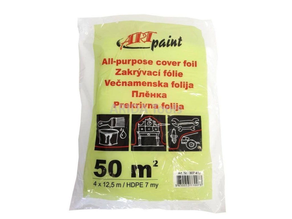 Fólie zakrývací HDPE, 7 µm, 4 x 12,5 m, průsvitná