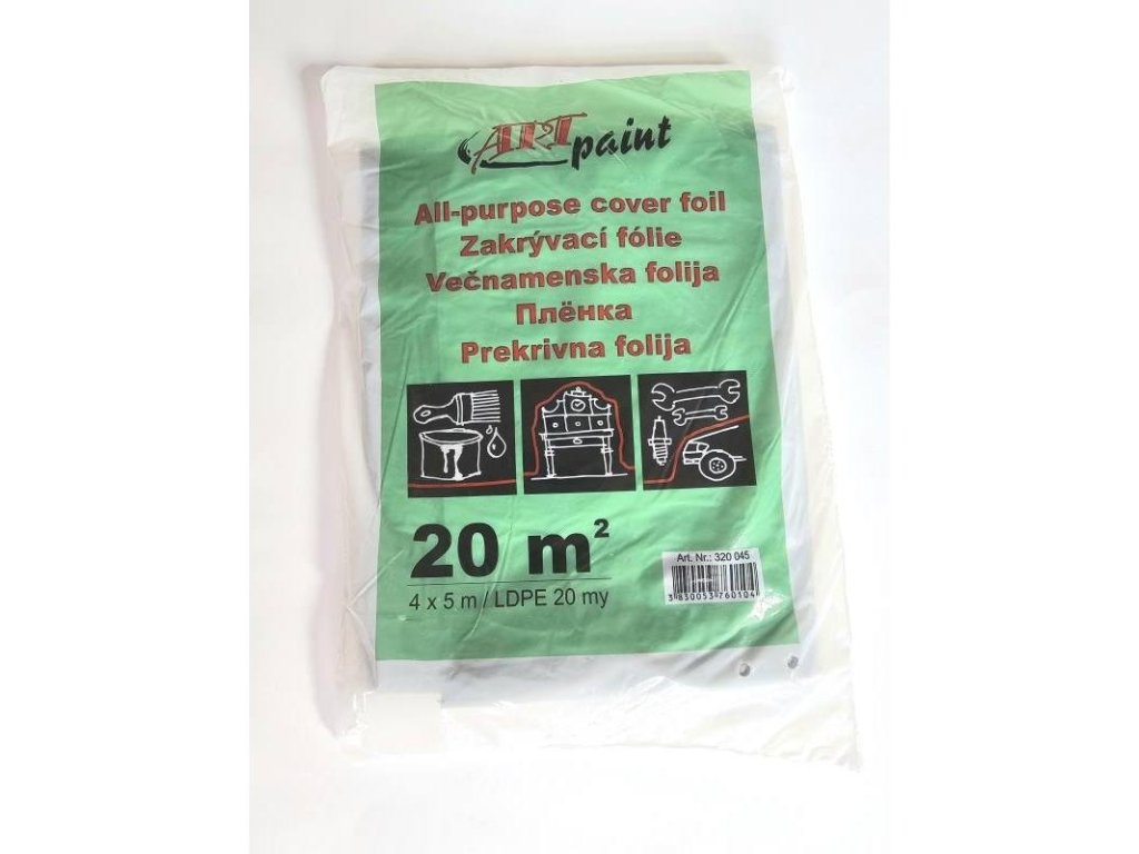 Fólie zakrývací LDPE, 20 µm, 4 x 5 m, neprůsvitná