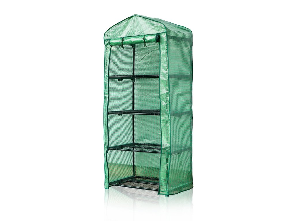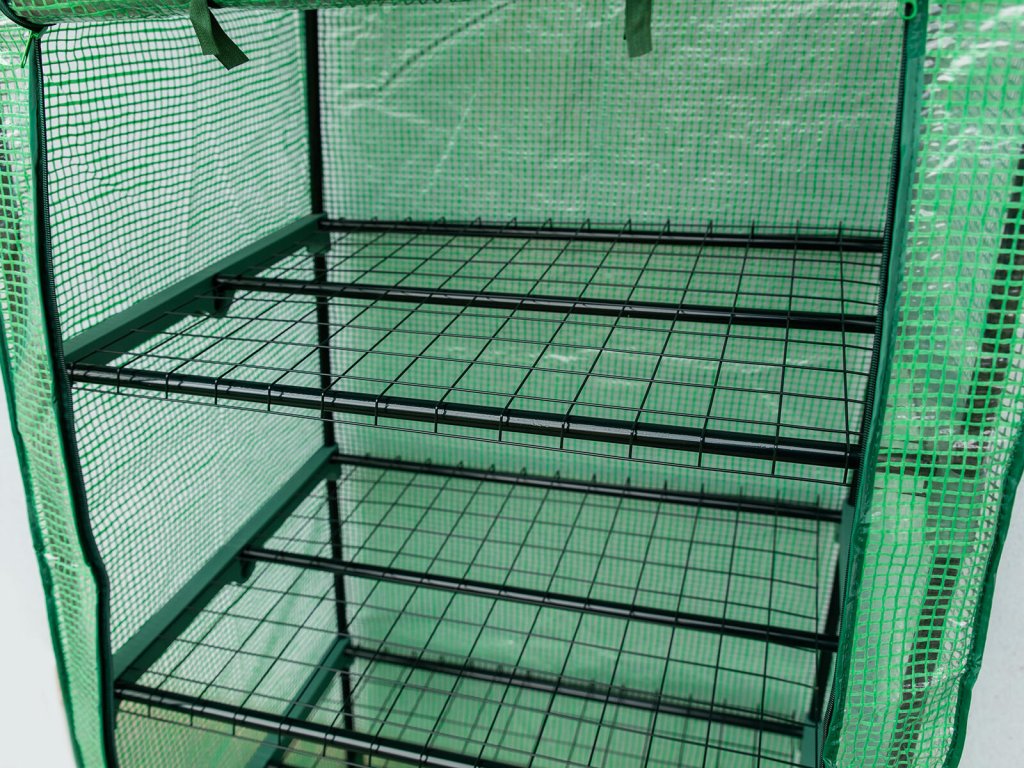 Foliovník 69 x 50 x 160 cm, 4 police, PH ZE. rozměry: 69 x 50 x 160 cm materiál: polyester 140 g / m2 barva: zelená Fóliovník je ideální pro pěstování sadby nebo urychlení růstu zeleniny. Na přední straně je opatřen vstupním otvorem se dvěma zipy. Fólie vyztužená síťovinou je z polyesteru v průhledné zelené barvě. Fóliovník je vybaven 4 policemi pro pohodlné umístění předpěstovávané sadby.Doplňkové parametry