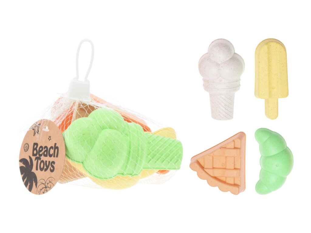 Formičky na písek JÍDLO, sada 4díl., PH. materiál: plsat mix barev a motivů balení: 4 ks Zábavné formičky ve tvaru jídla jsou ideálním společníkem na písek, pláž či k vodě.Doplňkové parametry