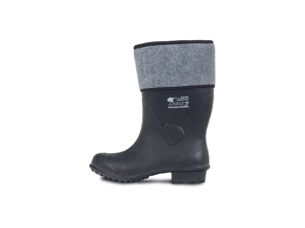 Pracovní obuv zateplená polyesterovým filcem s protiskluznou pryžovou podrážkou, svrškem z pryže a polyesterového filcu. Splňuje požadavky normy EN ISO 20347:2012.Doplňkové parametry