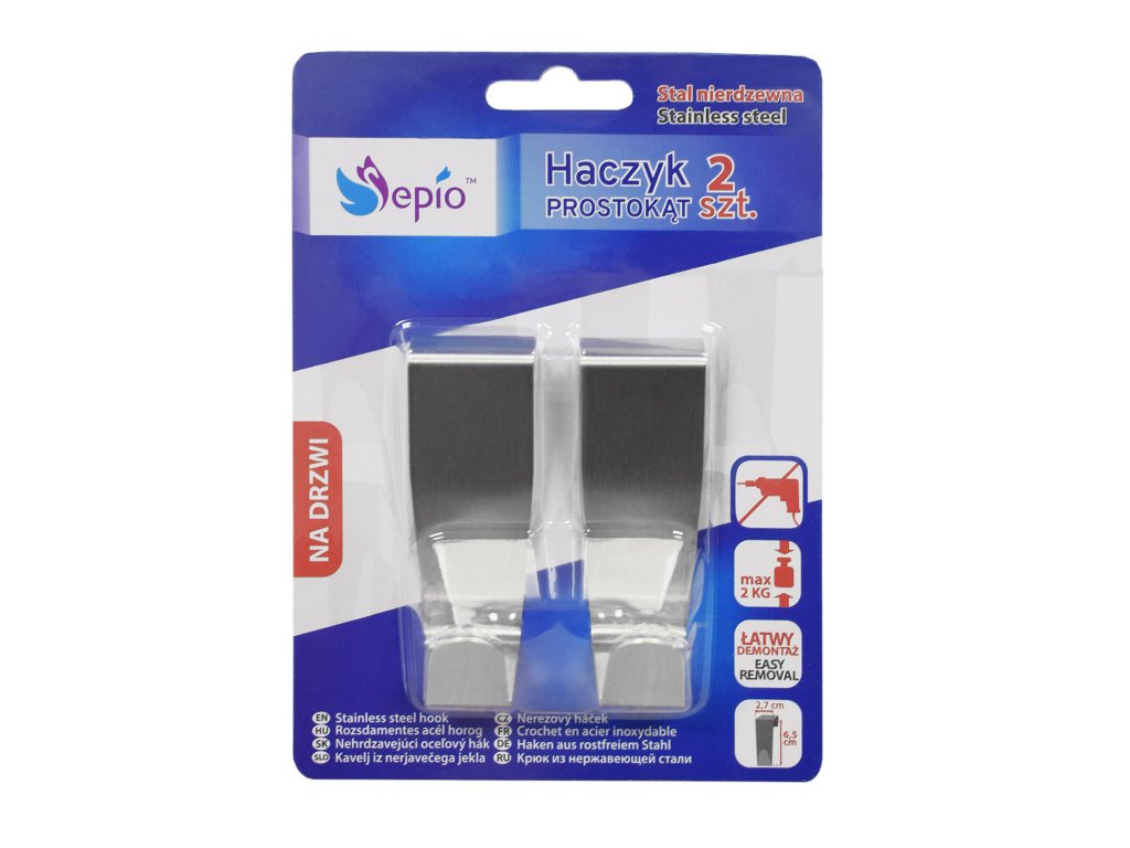 Háček na zásuvku 2,7 x 2,7 x 6,5 cm, nerez (2 ks). rozměry: 2,7 x 2,7 x 6,5 cm materiál: nerez balení: 2 ks Efektivní využití např. v kuchyni nebo v koupelně pro zavěšení utěrek, ručníků, apod. Ideální pro maximalizaci prostoru.Doplňkové parametry