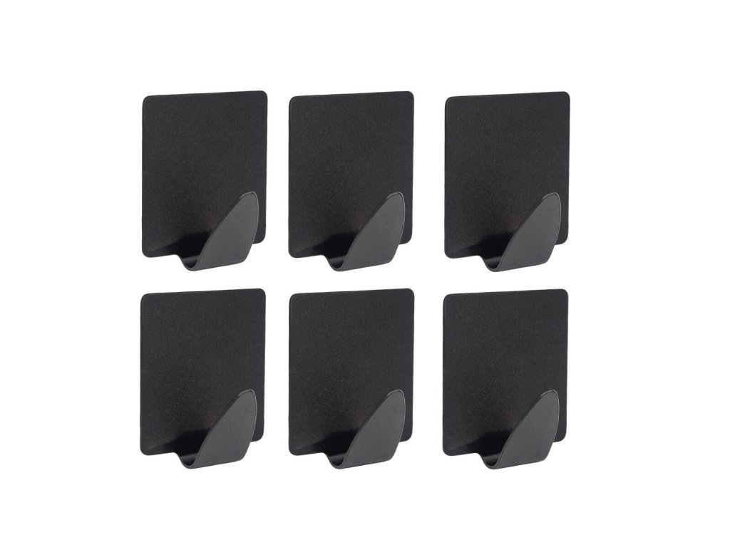 Háček samolepicí, obdélníkový, ocel ČER (6 ks). rozměry (š x v): 2 x 3,5 cm materiál: ocel barva: černá balení: 6 ks Obdélníkový samolepicí háček. Samolepicí háčky lze využít kdekoliv v domácnosti díky samolepicí pásce. Snadné a rychlé uchycení na jakýkoliv povrch.Doplňkové parametry