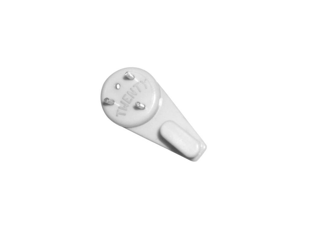 Háček tw. univerzální PH BÍ (5 ks). materiál: plast barva: bílá balení: 5 ks Háčky TWENTY jsou vyrobeny z vysoce kvalitní plastické hmoty polyamid (nylon), která vyniká maximální pevností a odolností. Rovněž použité hroty, ze speciální kalené oceli, jsou povrchově antikorozně upraveny a umožňují aplikaci háčku i v krajně nepříznivých podmínkách. Háčky jsou s úspěchem používány do betonu, panelů, umakartu, tvrdého dřeva a po zajištění delším hřebíkem, i v pórovitých a měkčích materiálech, omítce, pazdeřových deskách atd. Výborně drží též v plechu, nebo ocelových zárubních, i když pro tento účel nejsou přímo určeny.Doplňkové parametry