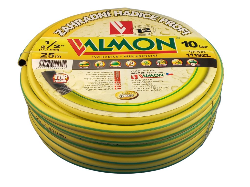 Hadice Profi žlutá neprůhledná Valmon - 1/2", role 25 m ( 10 bar )
